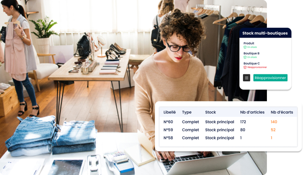 Que vous vendiez en boutique ou en ligne, vos stocks sont toujours à jour. Chaque encaissement, chaque mouvement de stock est automatiquement synchronisé.